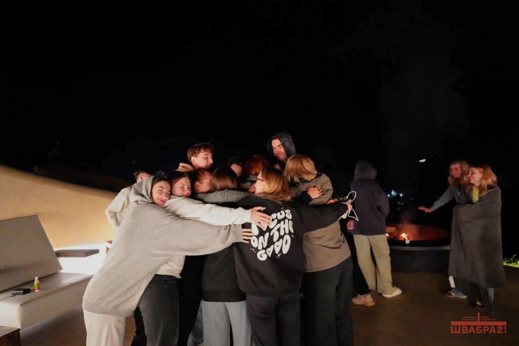 Обійми учасників під час фінального вечора офлайн тренінгів в Карпатах